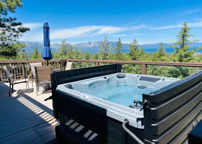 A Hch1475 - Heavenly Lake View Retreat Home South Lake Tahoe, localizada a cerca de 3 km da Estância de Esqui Heavenly, convida os hóspedes a relaxar com banheira quente.